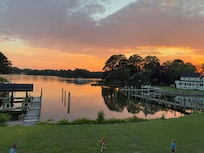 Spacious waterfront home with dock and sunset view