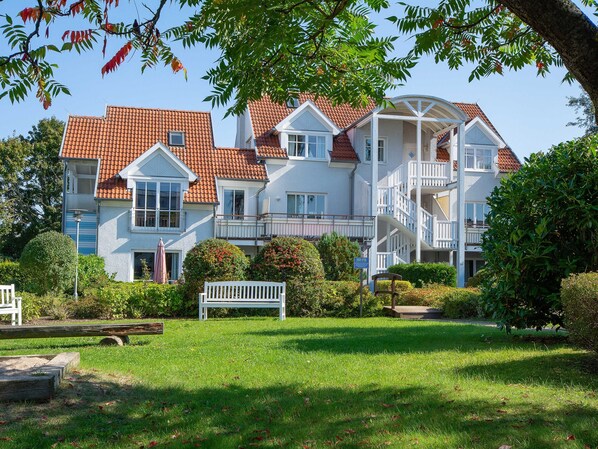 UN OASIS EN VERDE EN UNA UBICACIÓN CENTRAL TRANQUILA El complejo "Wohnpark an der Mühle" en la Cubanzestrasse se construyó en 1996. Se puede llegar a los apartamentos en las casas individuales a través de escaleras de madera externas. Estos y muchos otros elementos de madera le dan al complejo "Wohnpark an der Mühle" su propio estilo. Cada apartamento tiene una amplia terraza o balcón, a veces dos, que le invitan a relajarse. En este extenso complejo también hay una zona de barbacoa, un mirador y algunos juegos para niños. Nuestros huéspedes tienen una lavadora y una secadora disponibles por un cargo en un lavadero separado. Cada apartamento cuenta con un estacionamiento para automóviles, en parte como un espacio de estacionamiento techado. NUESTRO CONSEJO PARA AMIGOS DE LAS BICICLETAS: ¿Siempre has soñado con ir en bicicleta a la playa? ¿Te gustaría visitar uno de los numerosos eventos en el lugar en bicicleta? ¿O quiere ser un poco deportivo y hacer un recorrido de descubrimiento en bicicleta en la red de carriles para bicicletas bien desarrollada en el área? No importa lo que su corazón desee: en el alquiler de bicicletas "Mi bicicleta en el mar", en condiciones especiales (cupones de descuento que recibe al llegar) bicicletas, bicicletas eléctricas, bicicletas para niños, bicicletas de montaña u. V. M. prestado.