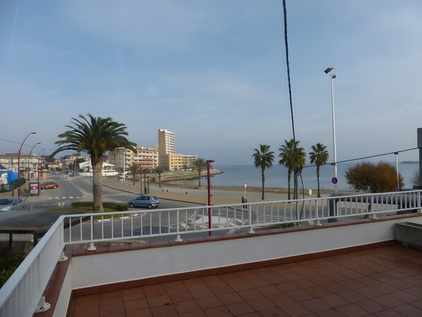 Salid al balcón privado o a la terraza descubierta para relajaros y contemplar las vistas al mar y a la montaña. Gracias a su cercanía a la playa, es perfecto para actividades costeras y momentos de descanso.