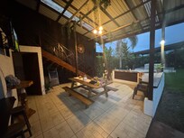 esta cabaña se encuentra en La Fortuna. Además de apreciar la belleza natural de Catarata La Fortuna y Parque Nacional Volcán Arenal, aquellos que deseen hacer una actividad pueden ir a Aguas Termales Baldi. También vale la pena conocer Puentes Colgantes del Arenal y Parque Ecológico Arenal Adventure World.