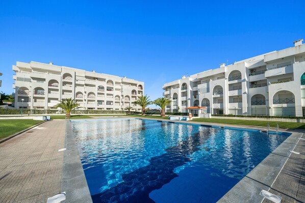 En Apartamentos Vista Mar en Armação de Pêra, disfrutad de la piscina exterior compartida y el jardín. Tenéis a vuestra disposición una ducha exterior para mayor comodidad.