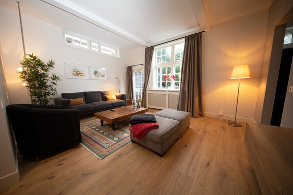 La casa fue construida en 1895 y está bellamente decorada manteniendo los detalles originales. A principios de principios de siglo, el escritor Louis Couperus vivió en el dominio durante 2 años. Hay conexión WiFi rápida disponible y en la sala de estar tiene acceso a un televisor inteligente de 55 ", incluido el sistema Sonos. La cocina está totalmente equipada y también tiene una cafetera Nespresso. La casa se encuentra a poca distancia de Laren, un hermoso pueblo verde en el centro de Het Gooi. En Laren se pueden encontrar numerosas tiendas de lujo, restaurantes, bares y el Museo Singer. Hay 3 Protecciones contra nidos (detección de humo / monóxido de carbono) presentes en la casa para su seguridad (en los dos dormitorios y en la sala de estar).