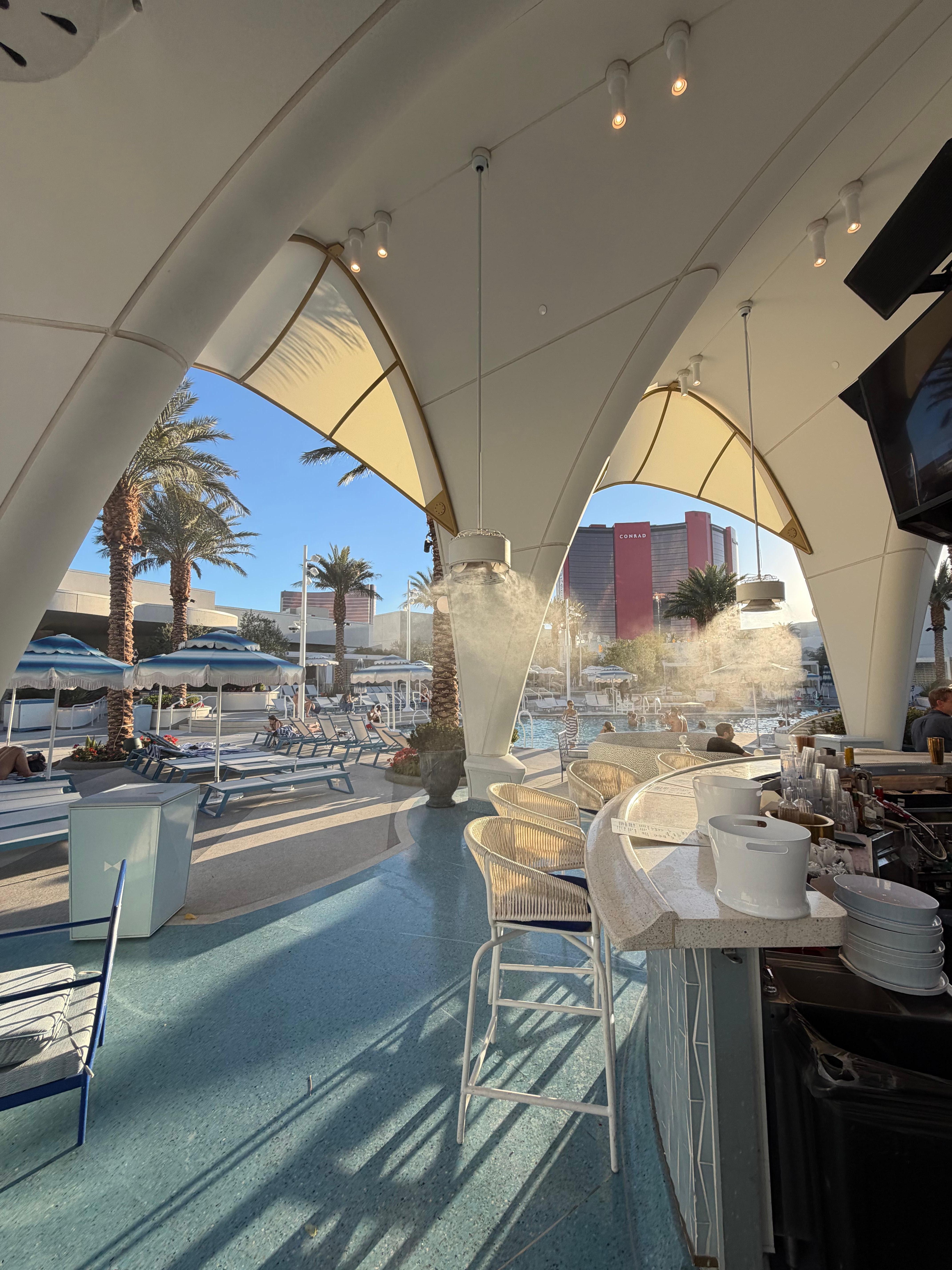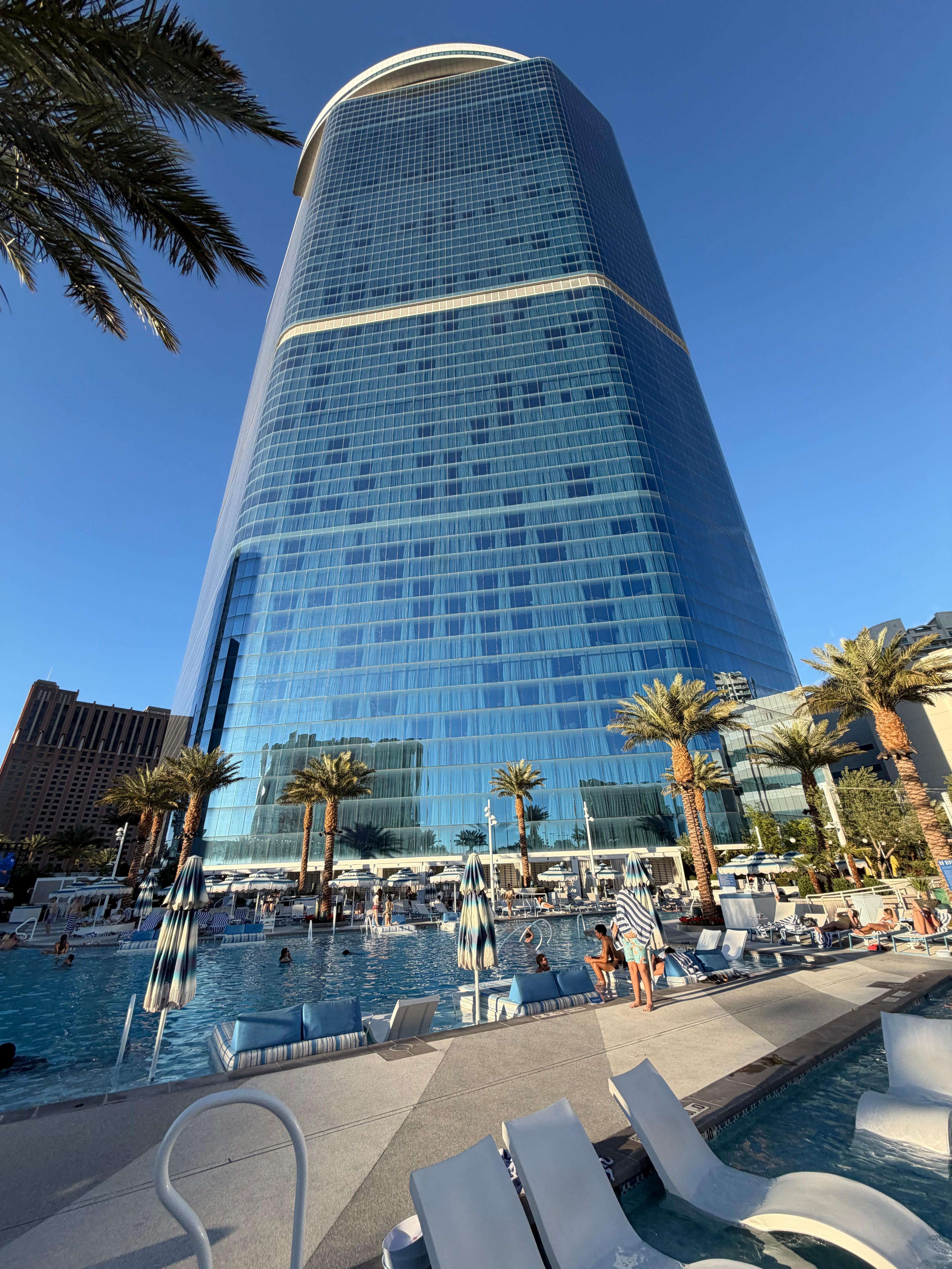 El hotel está al final del strip. Si te gusta lo tranquilo y no quieres estar en el ruido diario está perfecto, a nosotros nos encantó porque a un uber de distancia de todo teníamos un hotel súper bonito, cómodo, moderno
