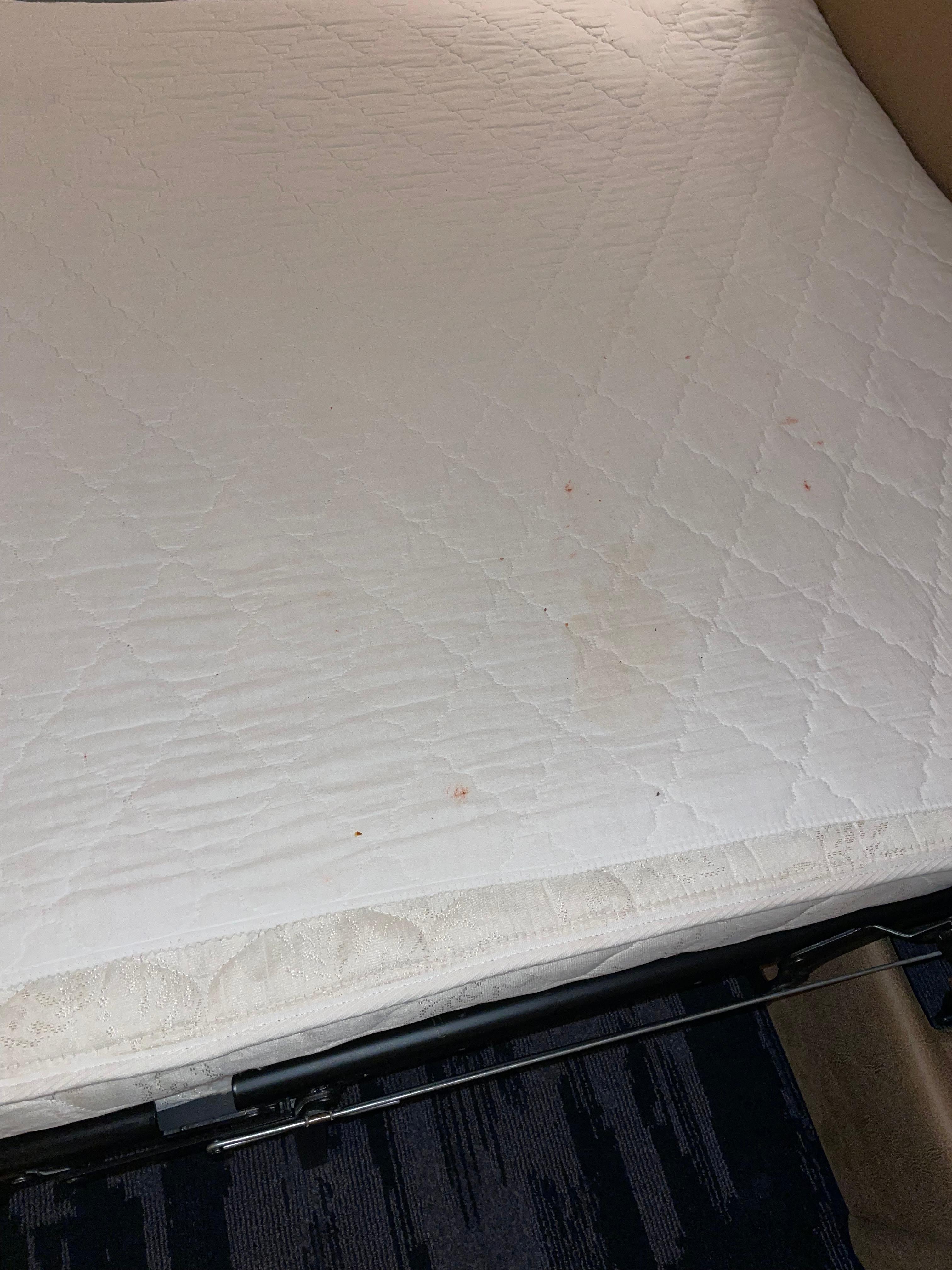 We experienced an extremely soiled and stained mattress pad cover on our sleeper sofa couch in our king room where our special needs daughter was to sleep. The stain appeared to be splatters of blood.This should have been inspected by housekeeping staff after EVERY stay by any customer. The sleeper couch is in that room for a reason as an additional place to sleep. The night person at the desk came right away and changed the linens and was shocked to see what we had described to her on the phone. She was mortified and apologized profusely and even offered to put us in a different room.