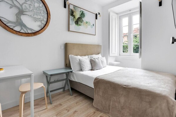 Nuestro estudio-apartamento totalmente equipado para 2 personas está situado en la planta baja y tiene todo lo que necesita para relajarse y explorar Lisboa con la comodidad añadida de estar situado en el corazón del distrito histórico. El estudio incluye una pequeña cocina y un cuarto de baño. Para que todos los estudios tuvieran su propia cocina y baño, hubo que hacerlos pequeños.