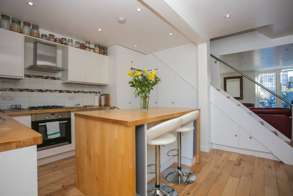 Casa básica, varias camas | Cocina privada | Refrigerador, microondas, horno y parrilla de estufa
