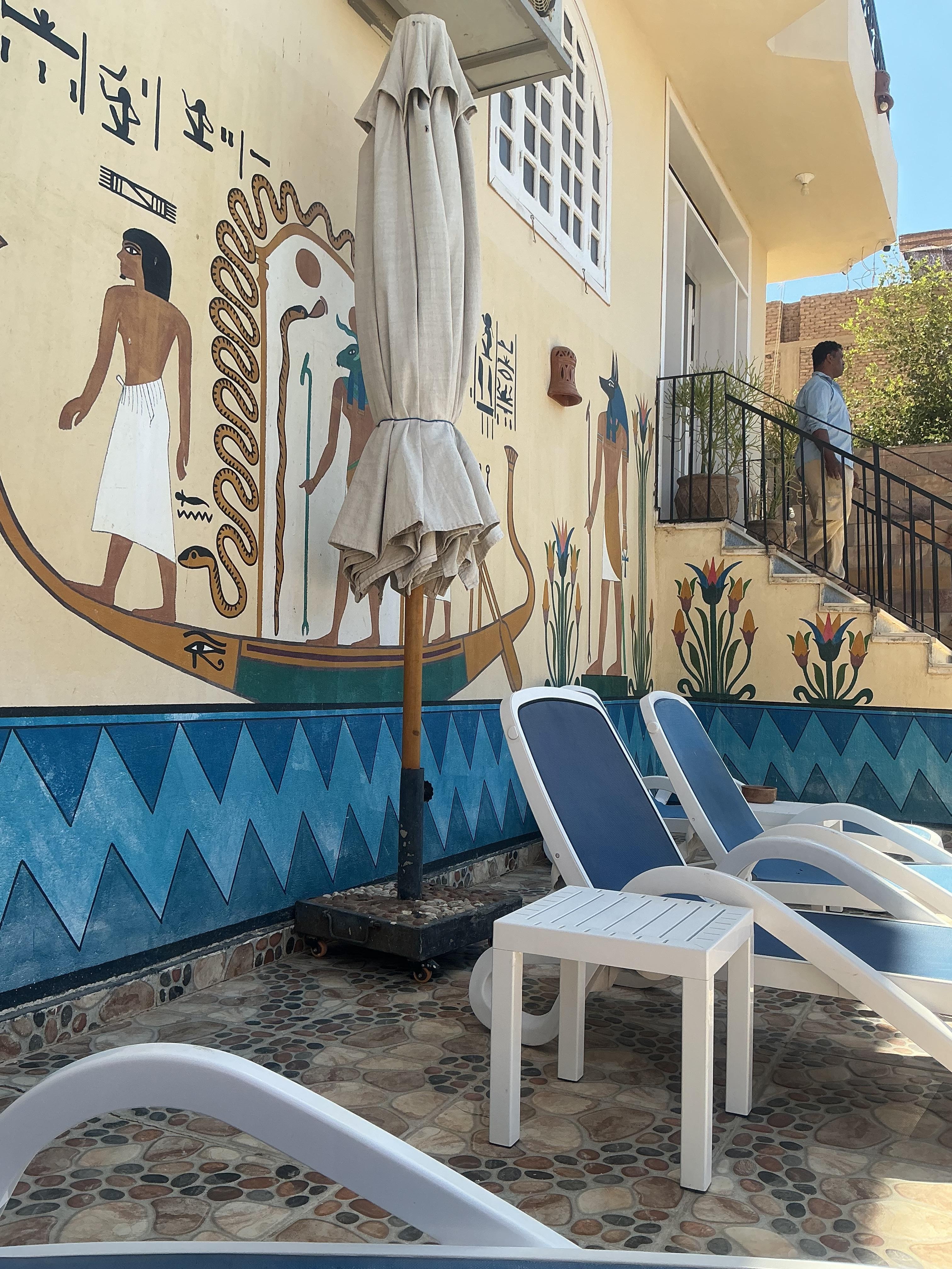 Our suite of rooms opened onto a stunning view of the mountains of the Valley of the Kings: we saw the air balloons hovering above them in the mornings. The host is very helpful and organised all our requests for transport, a local guide and local information with speed and efficiency. The rooms and bed linen were beautifully clean and the beds comfortable. The pool was a great addition and the sun deck a wonderful place to eat and relax outside. And the hotel is in a peaceful remote location for those who want to be far from the madding crowd, with easy access to the centre via request to the host.