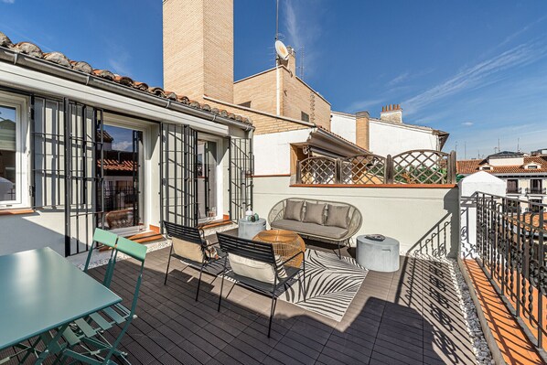 Este complejo de departamentos se encuentra en Centro de Madrid, a 10 minutos a pie de Plaza de Chueca y Gran Vía. Puerta del Sol y Puerta de Alcalá también se encuentran a 15 minutos. Estación de metro Chueca está a solo 3 min caminando, y Estación de metro Alonso Martínez se encuentra a 6 min a pie.