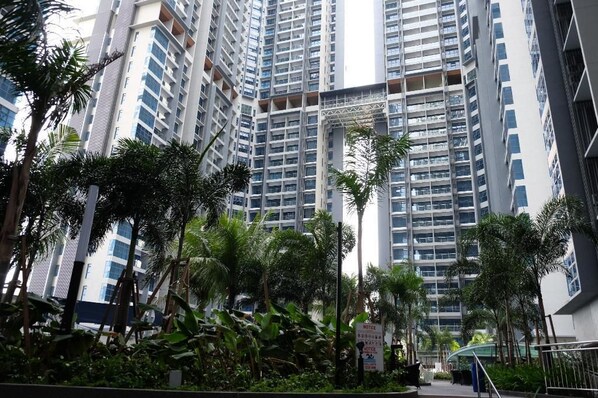 It was a good stay for our family of 7 and around 8 mins by Grab to Jonker Street night market. Although we didnt know there was construction going on outside and it was dusty. It was a bit of a walk going to Tower D in the back. Guards were strict about entering property and we had to ask them to allow our hired driver to go in for drop off and pick up. Its a self check in /out process but the host was very good with communication and explaining the procedures. One of the small room didnt have AC but only a fan, no bed but a few futons but the kids didnt mind. View was spectaculàr on the 27th floor. My 4yr old really enjoyed the kids pool.