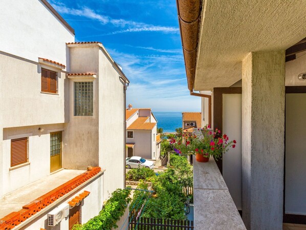 The villa with a few apartments is in the little town Mali Losinj, with a beautiful view of Velebit. There is a parking space on the pavement and there is space for bicycles in the hallway of the house.This apartmanet is for 3 people is on the ground floor and comprises a bathroom with a shower and WC, a living room with a double bed and an adjoining dining room, a kitchen and a terrace with a sea view. The kitchen is equipped with crockery for preparing and serving meals, cutlery for all guests, washing up liquid, a fridge, a stove. The dining room has a table and chairs for all guests. It is near the sea and the beautiful pine forest with a view of Veli Losinj, the Velebit mountain and the islands Rab and Pag. Sometimes you can see dolphins. Distances are as follows, as the crow flies: sea 130 m, nearest beach 130 m, nudist beach 500 m entfernt, town centre 450 m, sports facilities 350 m, grocery shop 400 m, restaurant 150 m, heavy traffic road 30 m, ambulance 850 m, bus stop 350 m, ferry harbour 850 m, nearest sports airport 10 km, nearest airport 90 km (Rijeka).Bed linen and towels are provided and the price includes water and electricity, as well as the final cleaning.