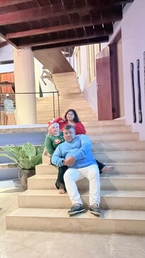 No living area Air Conditioning. House was generally hot. Upstairs bedrooms did not cool down with mini split to comfortable temperature. Internet in bedrooms upstairs which we considered the masters does not work. Water pressure low in upstairs bedroom when downstairs shower running. Upstairs bedrooms open air with screen not able to close off. For children there are many stairs cases and high platforms inside the house without hand/guard rails. Also outside porches could be dangerous for children with less than adequate guard rails. Poor water pressure if 2 showers running. In general the upstairs bedrooms could be difficult to get to for some adults.