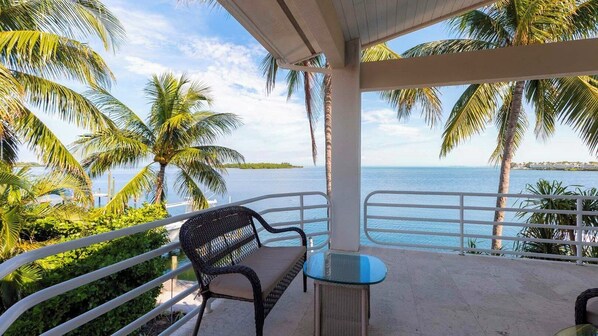 El segundo nivel es una gran sala familiar con bar, refrigerador, TV, mesa de cartas / póker y su propio balcón con vista a la bahía y la piscina. Esta habitación incluye un sofá cama queen size.