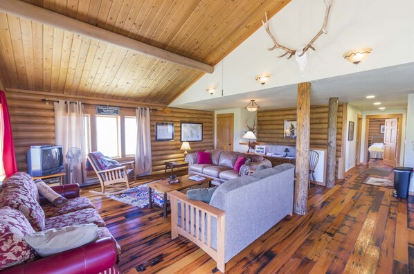 La cabaña Potosi Creek se encuentra a solo minutos de Pony, Montana, en las montañas de la raíz de tabaco, sobre los desagües de South Willow Creek y Potosi Creek. Recientemente remodelada, con encimeras de granito y electrodomésticos de acero inoxidable, la cabina ofrece una vista impresionante desde la cubierta envolvente. La cabaña ideal para familias tiene un amplio espacio para recorrer y hacer senderismo a solo unos minutos de distancia. Dormirá cómodamente 6 en dos habitaciones y tiene dos baños completos, así como un sótano completo con una mesa de ping pong para mayor diversión. Se consideran mascotas con un cargo adicional. La zona es conocida por sus excelentes caminatas, pesca, caza, esquí, ciclismo de montaña y motos de nieve. Hollowtop Mountain es una caminata favorita entre locales y no locales por igual. Varias aguas termales naturales se encuentran a 20 minutos de la cabina. Los lagos notables en el área incluyen Bell, Hollowtop, Albro y Sureshot Lakes. La cabina se encuentra a una hora en automóvil de Butte o Bozeman, Montana.