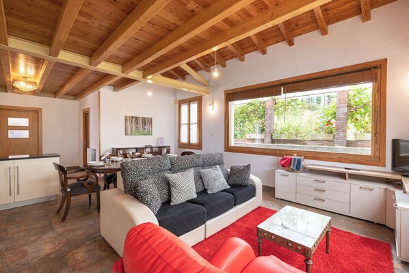 Zeru Haundi se encuentra en un edificio con varias distribuciones. La nuestra, es totalmente independiente de la otra vivienda, pero pueden tener vecinos. Tiene capacidad para 4 personas y cuenta con 3 habitaciones que dan a una enorme terraza desde donde disfrutar de una increíble vista con el mar de fondo como invitado estrella. La habitación principal tiene una cama de matrimonio y un ventanal desde donde apreciar las vistas, además de contar con sus mesillas, dos sillones orejeros y su armario. Las otras dos habitaciones tienen acceso directo a la terraza. Una, cuenta con dos camas individuales. Y la tercera tiene una cama nido. La vivienda cuenta con un baño con ducha y desde la entrada se podrá disfrutar de un gran espacio diáfano que cuenta con hall de entrada con sillón, un espacioso salón comedor con cómodos sillones para disfrutar del descanso. Y junto al salón una amplia cocina moderna que mantiene como decoración una antigua cocina económica y que está totalmente equipado, con todo tipo de electrodomésticos nuevos.