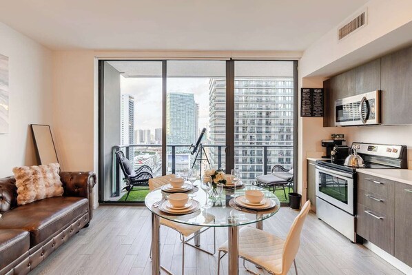 Private balcony with panoramic views of Downtown Miami and Biscayne Bay.