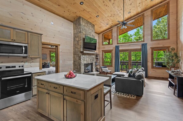 Esta cabaña para no fumadores cuenta con una tina de hidromasaje, lavandería en las instalaciones y un área con asador. Esta cabaña se destaca por detalles como la chimenea. Tiene además lavadoras y 3 baños. Aprovecharás la comodidad de tener microondas y lavavajillas, así como parrilla de estufa y Smart TV.