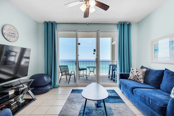 Majestic Sun ofrece 12 historias de vistas increíbles que abarcan las arenas blancas como el azúcar y el agua verde esmeralda de la costa. El edificio tiene vistas despejadas del Golfo donde las puestas de sol son increíbles. Ubicado en el prestigioso Seascape Resort que abarca más de 300 acres de exuberantes verdes, lagos serenos y 2000 pies de playa de arena blanca. Majestic Sun ofrece a sus huéspedes una piscina climatizada cubierta / al aire libre, 2 bañeras de hidromasaje y un gimnasio en el lugar. El magnífico Seascape Resort cuenta con un campo de golf de 18 hoyos, canchas de tenis, senderos naturales, lagos de agua dulce, bar y parrilla junto a la playa, y mucho más. ¡No te pierdas esta increíble experiencia!