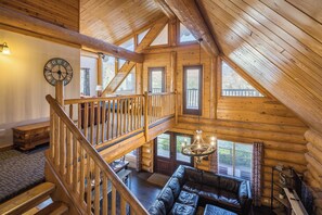 La planta principal tiene una gran sala con sala, comedor y cocina, todos compartidos, un gran espacio maravilloso para reunirse y relajarse. La sala de estar tiene un techo abovedado alto, chimenea de gas y una pantalla plana de 55 "con un reproductor de Blu-ray y Netfix, Hulu y HBO Go para que te relajes después de tus aventuras. El comedor tiene una mesa extensible que puede acomodar hasta 10 (12 si tienes niños). Con capacidad para 4 más en la cocina alrededor de la isla. La cocina cuenta con hermosas encimeras de cuarzo, armarios de estilo rústico y mucho espacio para tener algunos cocineros en la cocina. El dormitorio principal tiene dos camas queen, amplio armario, baño adjunto y una terraza privada. Cuarto de lavado y 1/2 baño están en la parte posterior del camino.