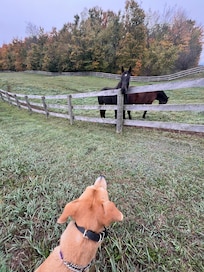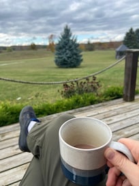 This was everything we wanted in a quiet getaway for two plus our dog. The property was gorgeous and well maintained. Impossible not to feel relaxed with the long, country views and clean air. Very pet friendly and accommodating. Our dog is all kinds of anxious, so he loved having so much open space to himself to run around then being able to relax indoors with his humans. There was even trails on the property through fields and forests we could go through with him. The kitchen also impressed me, it was well supplied with every cooking apparatus you’d need and the knives were sharp, something I find is rare at BnBs. The propane fireplace that heats the place was easy to use as was the space heater upstairs in the comfy bedroom. The heated shower room floor was also always appreciated. The furniture and decor was also very nice. A pet peeve/joke amongst my friends is when you visit a cottage and it’s decorated with way too many LiveLaughLove, Wine O’clock, Lake This Way etc signage. I was so pleased there was none of that here! There was nice art on the walls. It was hygge, not cheugy if that makes sense to anyone reading this. There was also a bird feeder right next to the dining room window which attracted constant activity. Got a couple good shots of birds for my Merlin app from the comfort of indoors. I would definitely stay here again and would highly recommend for any couples looking to fully relax and unwind.