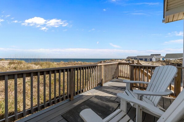 Beech Nut es una hermosa casa frente al mar de Outer Banks con una conveniente área para perros cercada al aire libre. Las vacaciones también son un placer para la familia y la mascota de la familia. ¡Medio baño abajo en el nivel del suelo agregado para su conveniencia! Disfrute de impresionantes vistas al mar desde la sala de estar y desde los dos niveles de la cubierta, con bronceado y natación a pocos pasos de las dunas. Área de almacenamiento de invitados con lavadora y secadora se encuentra en el nivel del suelo. Ubicada en Milepost 20. 5 en South Nags Head, esta casa fue diseñada con la conveniencia de un nivel en mente. Todas las habitaciones cuentan con TV / DVD. Las comodidades adicionales incluyen TV con DVD en la gran sala, equipo de música, Play station, trona y pack n play. ¡Te volverás loco por la playa justo afuera de tu puerta!