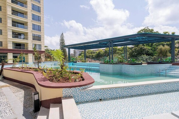 Luxe haven+ pool/gym/mini mart/king bed/coffeshop