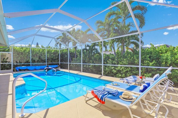 We had the best stay at this beautiful home on Marco Island. Everything was just as described/pictured and we had plenty of space for our family of 5 to relax. Our kids couldn't get enough of the pool and also loved hanging out on the hammock. We had the large sliding door open nearly the entire time, letting in a great breeze and allowing us that indoor/outdoor living. Everything we needed for a beach day was provided including a wagon, chairs, an umbrella and sand toys. The home is on the corner of a busy street, but in a convenient location to grocery stores, restaurants and just a short drive to the beaches. We got great fresh fish at Paradise seafood market and cooked dinner on the grill a few nights. Two other favorite finds for food were Ori's bakery and The Capri Fish House. We definitely hope to return!