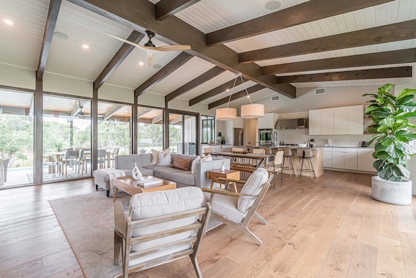 MidMod Luxury Retreat- Heated Pool and Spa, Game Room, Fire Pit, Sleeps 12