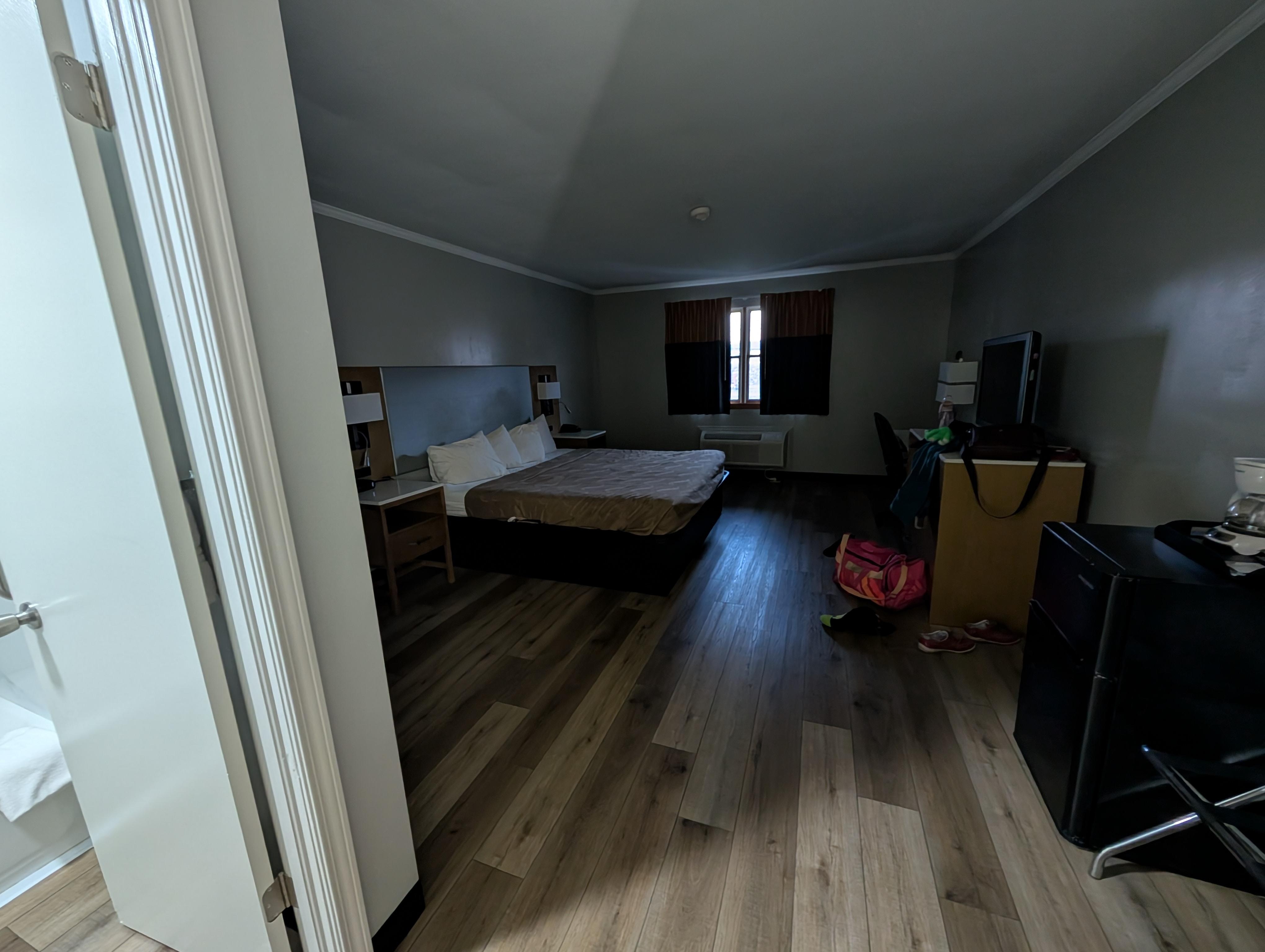 Room had a very strong chemical cleaner smell which got exponentially worse after turning the heat on to the point of eyes and throat burning and having to open the window which didn’t have a screen installed so thankfully it was a cool wet night out and no bugs flying around