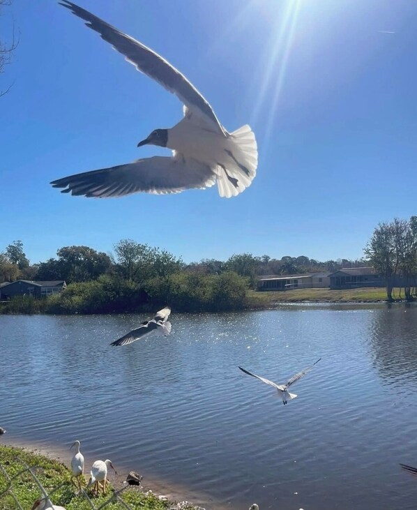 Disfruta del amanecer y las puestas de sol sobre el hermoso lago Cedar. Sí, tenemos una pequeña isla directamente en alta mar que es una colonia protegida, a menudo repleta de aves exóticas y en peligro de extinción. Compré esta casa a primera vista para mi agencia de asesoramiento, The Packard Institute, Inc., específicamente por su riqueza ambiental, curativa y cualidades terapéuticas. Los sonidos creados son fascinantes. Volverás año tras año solo para las aves. Entre las especies en peligro de extinción que verá se encuentran la Cometa de caracol Everglade, el Caracara crestado de Audubon, el Chorlitejo, el Scrub-jay de Florida, la cigüeña de madera, el pájaro carpintero de cabeza roja, y si tiene suerte, se sabe que la nutria ocasional lo visita. Lleva los kayaks a la isla ... pero intenta no molestar a ninguna de las muchas especies de la zona.