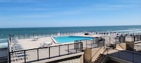 Fantastic ocean view/roof top pool from balcony. Summer waves at Lazy Days .
