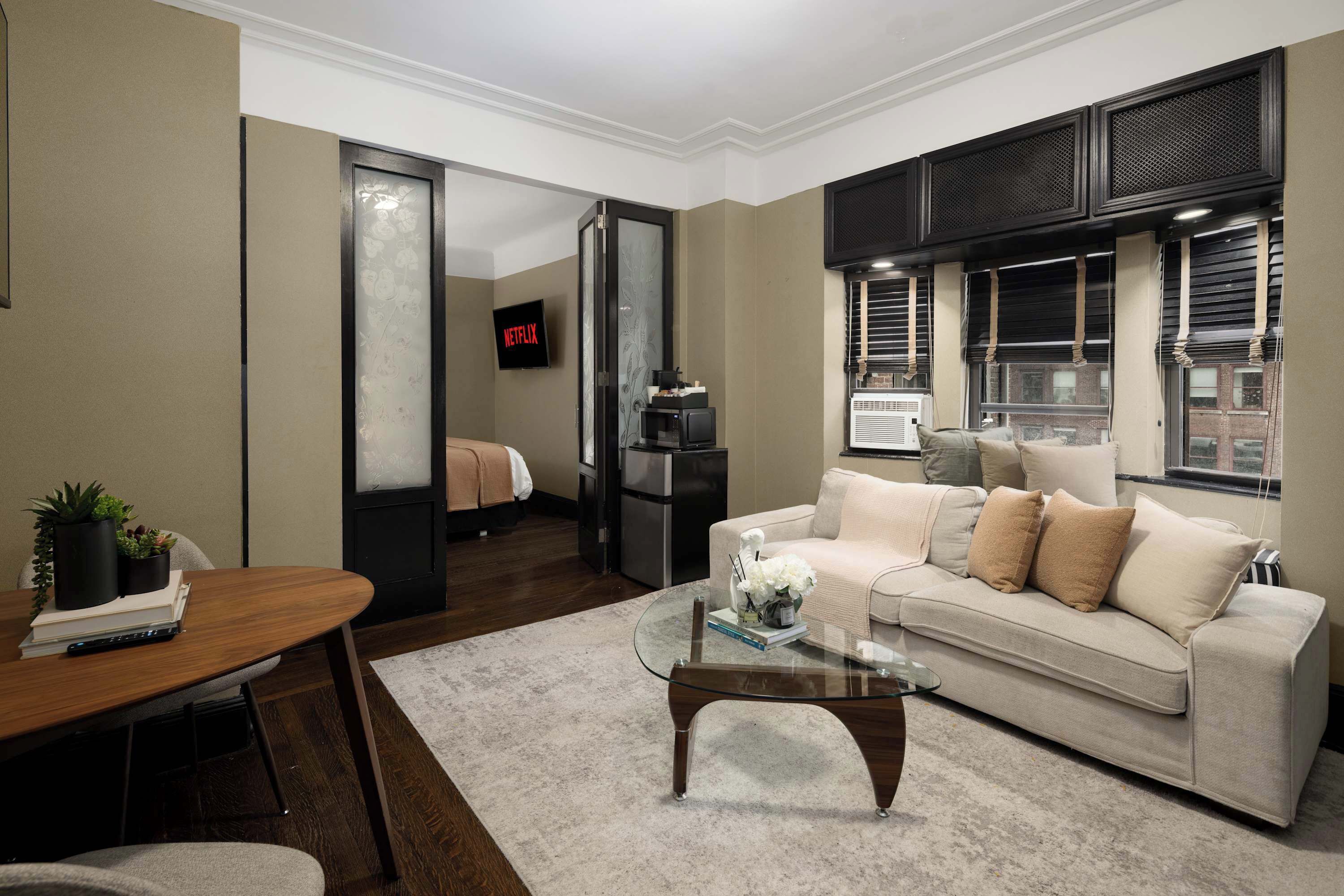 Los baños están equipados con regadera. Este departamento en Nueva York ofrece acceso a wifi gratis.