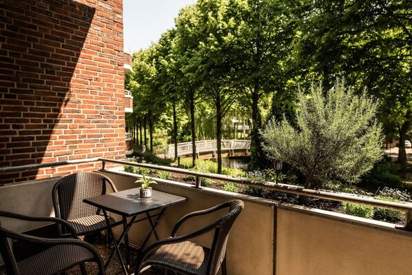 Complejo de departamentos en un lago con cocina y balcón