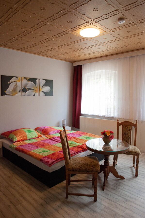 Wer den Charme der 70er Jahre liebt, ist hier richtig. Die Gastgeber waren wirklich sehr nett und freundlich. Die Ferienwohnung würden wir jedoch leider nicht weiterempfehlen. Für eine Nacht vielleicht okay, aber nicht für einen längeren Aufenthalt. Die ganze Wohnung roch muffig, nach abgestandener Luft, einfach sehr unangenehm. Es gab leider nur ein großes Handtuch pro Person, kein Händehandtuch oder Duschvorleger. Der Wasserhahn im Waschbecken im Bad hing so tief ins Becken rein, dass man sich kaum die Hände darunter waschen konnte. Die Badewanne konnte nicht benutzt werden, da es keinen Wasserhahn gab. Die Dusche war sehr gut, sogar ebenerdig mit Licht. Die Betten waren in Ordnung, das große Bett aber etwas zu niedrig, also nicht für ältere Menschen geeignet. Wir haben aber gut geschlafen. Die Küche wirkte auf den ersten Blick sauber. Wenn man dann aber Dinge angefasst hat, blieb man überall kleben. Und wenn man dort Urlaub macht, möchte man nicht unbedingt um 6:30 Uhr von den herausgelassenen Hühnern geweckt werden, die dann fröhlich vor dem Fenstern gackern und vom Hahn gerufen werden. Die Gegend ist ganz schön, wenn man es abgelegen mag.