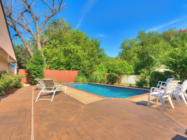 Private n secluded blocks from the OU football stadium Pool outdoor kitchen