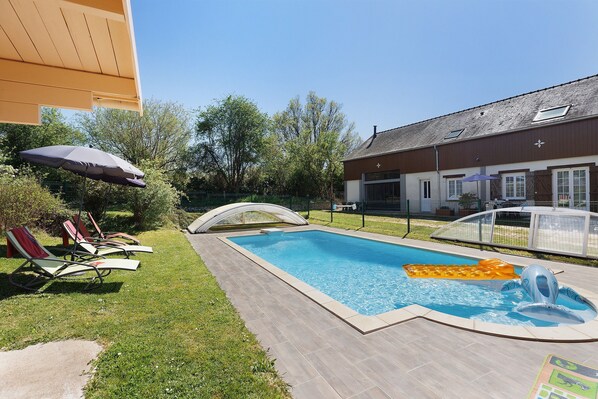 Casa rural con piscina en el campo, ideal para familia de 4 cerca de Le Lude y zoo de La Flèche