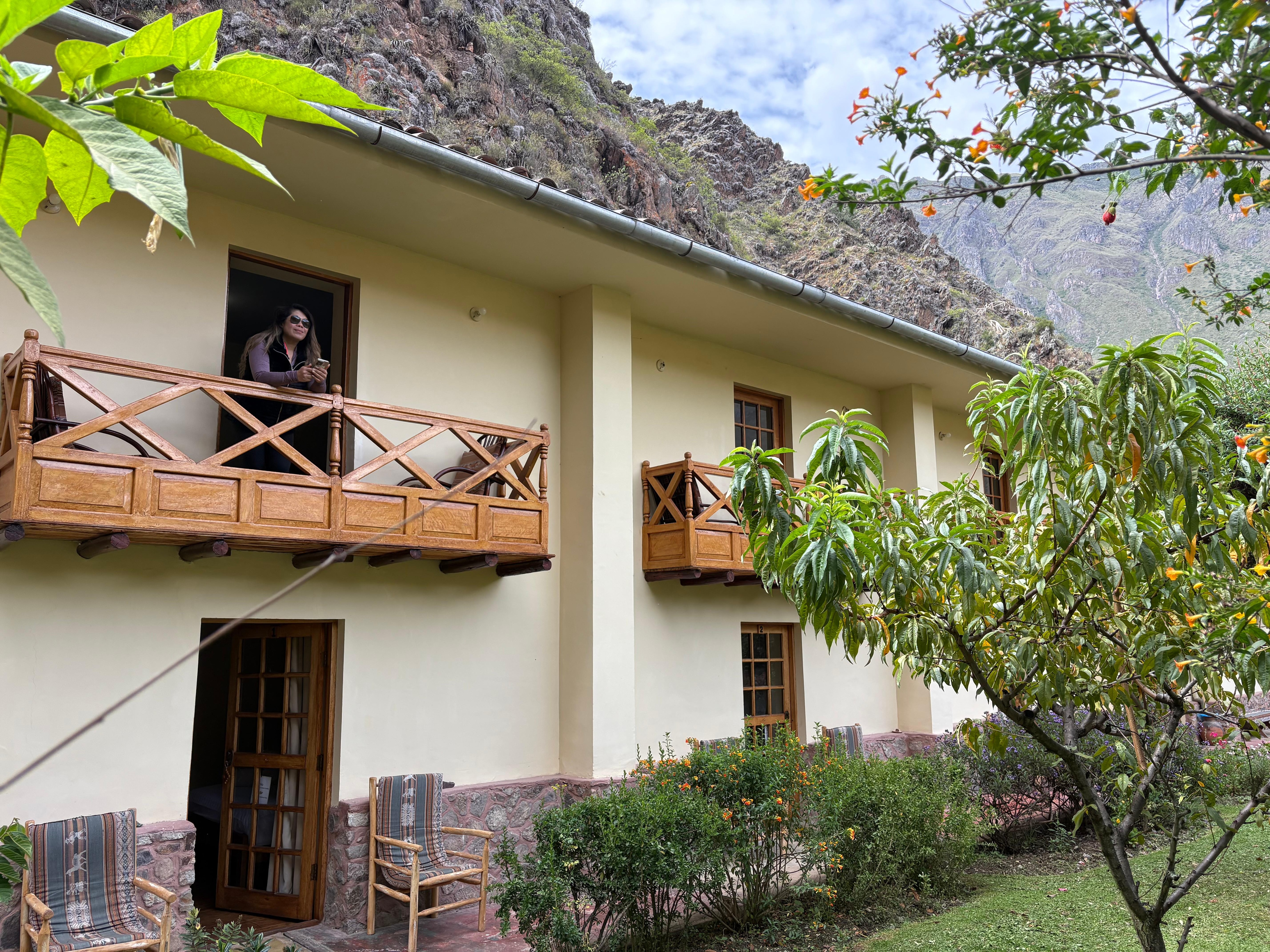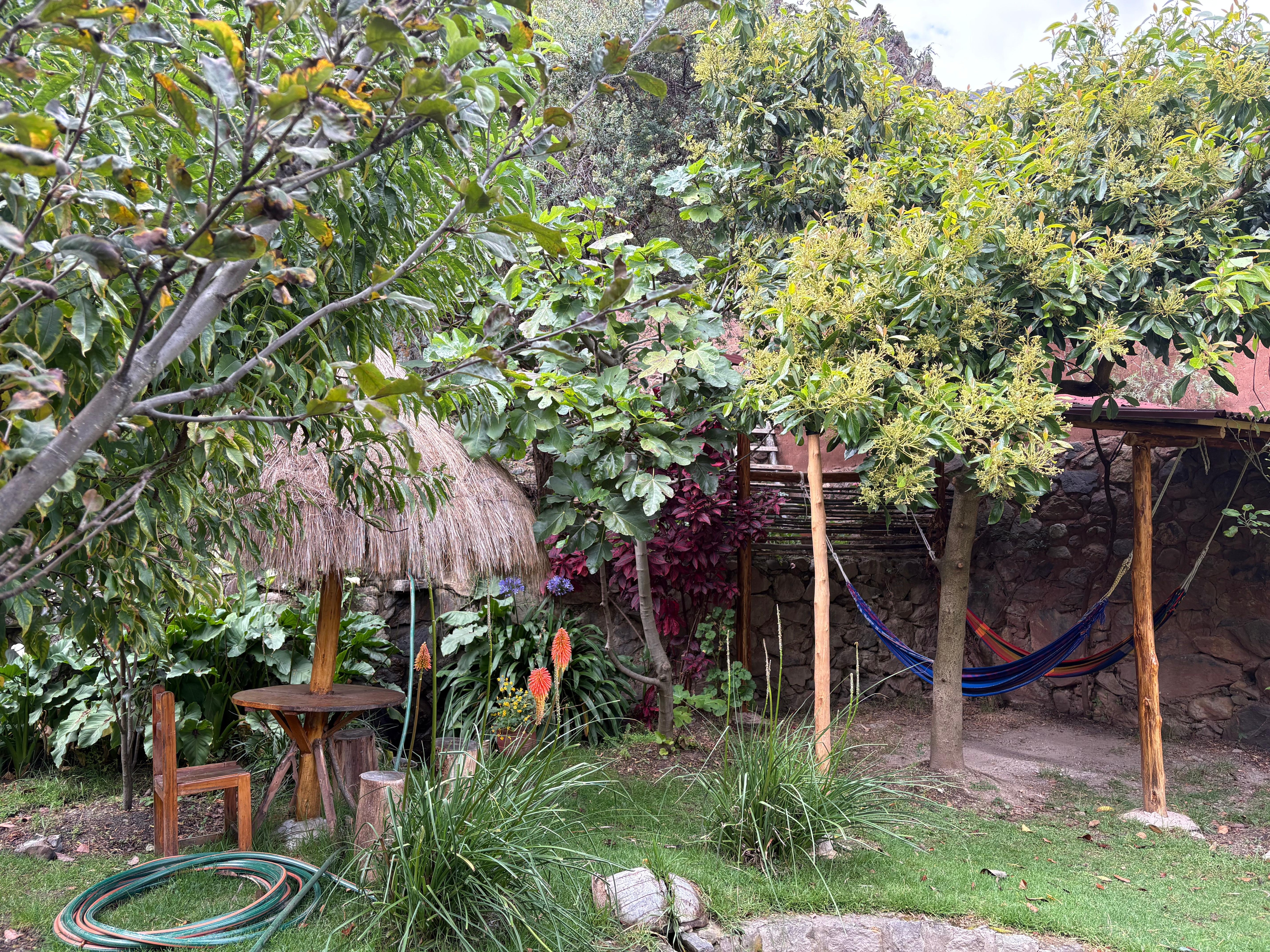 The Apu Lodge garden in Ollantaytambo was one thing that was welcoming, along with the hammock, and the surrounding view. The flowers and color of the surrounding made it relaxing. Very private property. Good hot water and pressure on the shower. No wifi in bedrooms, no tv, the bed wasn't too bad, the bedroom size was acceptable. There really was nothing on the service that stands out. They do have breakfast included. If bed and room is all you need, it's a good place to get a goodnight sleep, quiet, and away from town, right at the foot of the mountain. Do not expect to get a ride right to the front door, you walk to find the place. About 5-10 minutes walk to town center. No ride can get here. That's part of the culture, you don't get the convenience here like you get in the states and other city hotels. Get to town for early dinner before dark if you are not comfortable walking in the dark. No crime detected. It's a pretty little town.