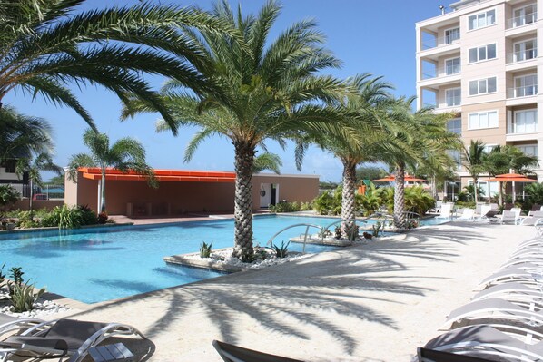 Nuevo condominio de lujo ultra moderno de 2 dormitorios y 3 baños directamente frente a Eagle Beach que ofrece impresionantes vistas del océano y la piscina. Esta propiedad ofrece alojamiento completo llave en mano para una escapada romántica o con su familia. Ubicada aproximadamente a 15 minutos del aeropuerto, este exclusivo complejo junto a la playa cuenta con solo 56 unidades de condominios de lujo con una piscina muy grande, jacuzzi y gimnasio totalmente equipado en un entorno tropical. La unidad ofrece 2 dormitorios cada uno con un baño separado de 3 piezas. También hay un baño común de 2 piezas ubicado en el pasillo. La hermosa unidad ofrece aproximadamente 1300 pies cuadrados de espacio habitable de lujo. Los arreglos para dormir son "dormitorio principal con cama King Size", el segundo dormitorio ofrece "cama Queen Size" y, por último, hay un sofá cama en la sala de estar. Los televisores se encuentran en los dos dormitorios y en la sala de estar con cable e internet incluidos.