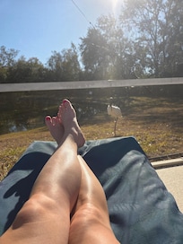 This is a bird lovers paradise! We had an unexpected front row seat to the private pond filled with birds every day. We saw white Ibis, Muscovy Ducks, and a particularly friendly Wood Stork we named Cheese!The house was an older home that has been nicely updated with new cabinets, furniture, towels, dishes, etc. We had fun with the pool table, darts, and foosball table. The guest bed was hard and the guest shower ran cold after about 10 minutes. However, I'm told the master bedroom was more comfortable on both accounts. The house was close to parks, but far enough to feel some peace at the end of a stimulating day. The pool was nice, but it was too cold to use while we were there, unfortunately. For reference, it was getting into the mid '40s at night and low 70s during the day. We paid for heating in the pool, but it wasn't enough to offset the cool temperatures. Lawrence was responsive and accommodating!We would stay here again!