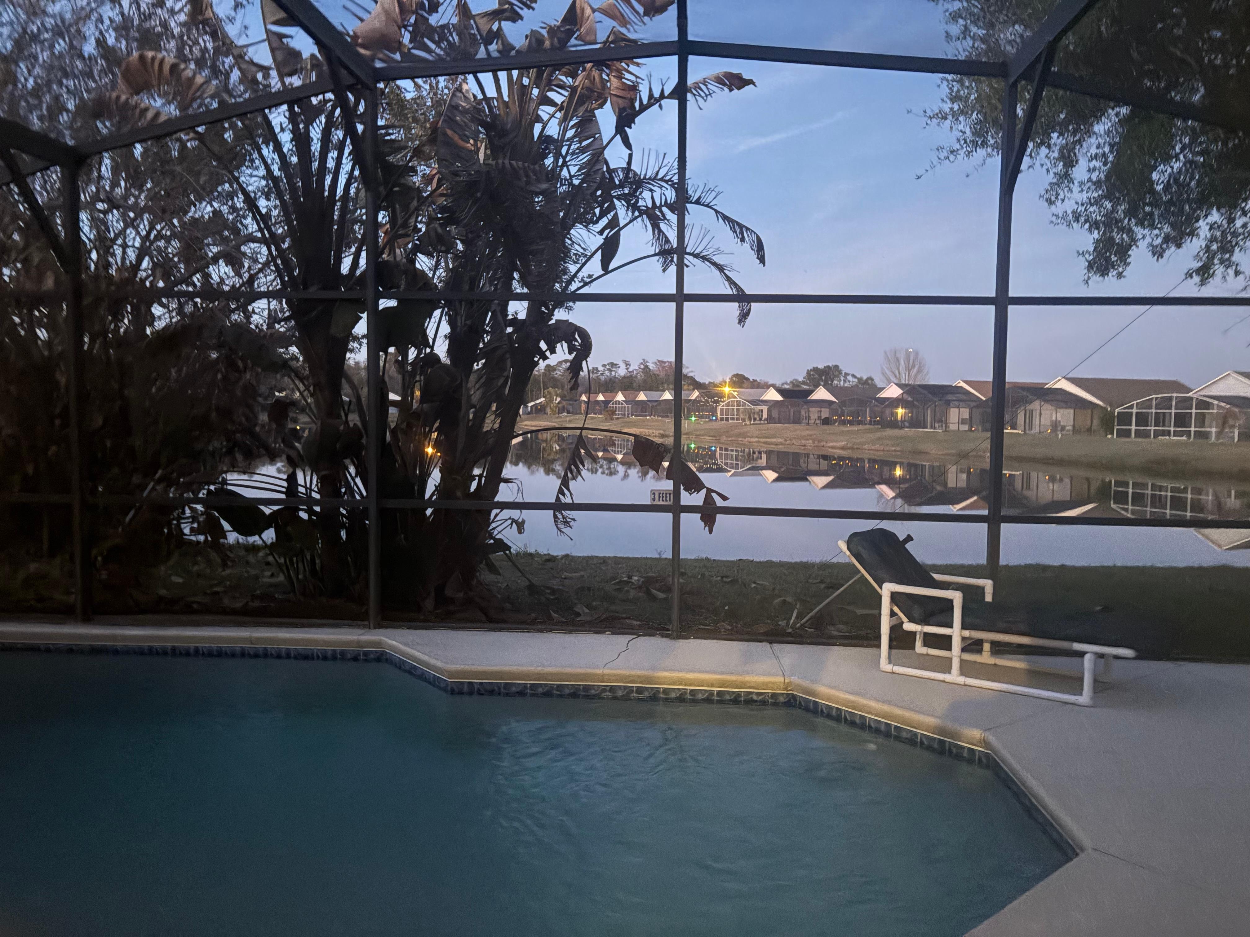 Our granddaughter had received her make a wish and chose Disney world so of course me being her granny I had to b there but I wasn’t interested in staying in the park and this house was only 6 minutes from the Give the kids the world village ( the make a wish families stay there). Upon arrival it was super easy to check in and the house was very clean , which was great because I’m at tad ocd over cleanliness ! I had read other reviews and I was aware they had previous issues with the netting around the pool but in all fairness the storms were very hard and it had knocked some netting down ,I notified them of it and I even told them it was no big deal as most of my time was spent at Disney but the landlord had them out and it was fixed before we even left !! It was a beautiful home and the lake out back even had an alligator amongst all the fish turtles and ducks ,which made my grandchildren so happy to see !! I would definitely recommend this home and I would certainly book it again !!
