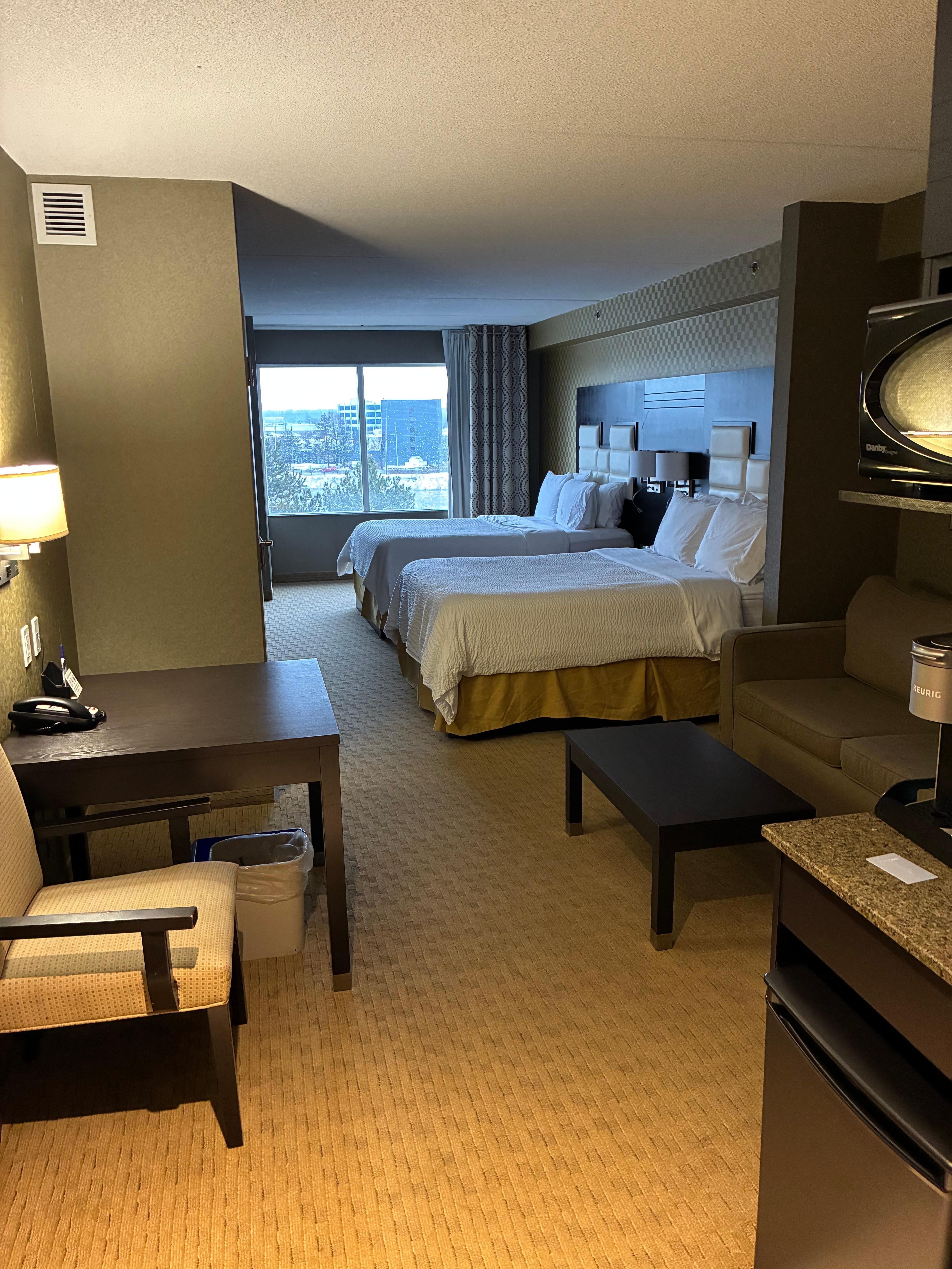 Our stay was very enjoyable, bed was super comfortable. Even with the ongoing renovations, and not being able to use the pool. Your staff was very pleasant and accommodating with giving us a bigger suite as an upgrade.