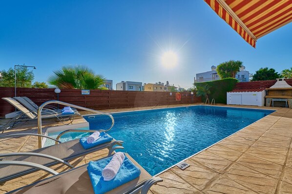 Villa Roker es una villa de 3 dormitorios y 2 pisos que ofrece un retiro encantador para un grupo de seis personas o una familia que busca un refugio privado para experimentar la vida tradicional de la isla de Chipre. La propiedad tiene su propia piscina privada de 8x4 y un jardín bien cuidado para interminables y relajadas horas de descanso bajo el brillante sol del Mediterráneo. Tenga la seguridad de que disfrutará de una estadía tranquila con nuestro administrador de propiedades dedicado que se encuentra a solo una llamada de distancia. Esta villa tiene una ubicación privilegiada, ya que la popular franja de Coral Bay está a solo 2 minutos a pie, donde encontrará una gran cantidad de tiendas, restaurantes y bares que sirven comida local y preparada. Además, la comodidad de las tiendas que le ofrecen comestibles de regreso a su casa de vacaciones hará que sea más fácil para usted apoyar una hermosa comida al atardecer. La propiedad está ubicada en un complejo de villas, que ofrece un entorno limpio, tranquilo y bien construido con una ubicación a poca distancia de todas las comodidades necesarias, restaurantes y tiendas. La popular Bahía de Coral, una bahía de 500 metros de largo con arena dorada y aguas azules y limpias, es una bahía con bandera azul certificada y se encuentra a 15 minutos a pie de Villa Roker. La villa también se encuentra a 2 minutos a pie de la parada de autobús, que ofrece acceso directo a todos los servicios necesarios. El jardín ofrece mucho espacio para tomar el sol y está amueblado con muebles de calidad sólida y modernos, con cómodas tumbonas y sofás de ratán que crean el escenario para un verdadero oasis de calma y tranquilidad. La piscina tiene profundidades variables y tiene luces de inundación que la convierten en una opción segura y relajante por la noche. Si prefieres un poco de sombra, eso también se proporciona en la terraza cubierta, que está a pocos pasos de la piscina, donde te recibirán con un juego de ratán cómodo de seis piezas. A través de puertas correderas altas, podrá acceder a la sala de estar con aire acondicionado, que está amueblada con dos sofás de cuero blanco reunidos alrededor de la moderna mesa de café, que brinda un ambiente cómodo para disfrutar del WIFI gratuito y del televisor de plasma con Internet. Deportes aéreos y películas ilimitadas (así como opciones de canales internacionales). La sala de estar se abre a una cocina magníficamente equipada con todos los electrodomésticos necesarios que ofrecen microondas, refrigerador grande, congelador, cocina eléctrica de alta calidad, horno, tostadora, hervidor eléctrico y otros electrodomésticos que hacen que la propiedad se sienta como un hogar lejos del hogar. Las 3 habitaciones grandes con aire acondicionado están en el segundo piso y pueden acomodar a 6 adultos con facilidad, con un gran armario para guardar y colgar. El dormitorio principal en suite tiene una cama de matrimonio y acceso a la terraza. El segundo dormitorio también está amueblado con una cómoda cama de matrimonio. El tercer dormitorio está amueblado con 2 camas individuales cada uno. Las habitaciones tienen un ba��o dedicado que sirve tanto. Permanecer en Villa Roker le brindará la oportunidad de probar y sentir el aroma y el ambiente de Chipre combinados con momentos llenos de luz, energía positiva, hospitalidad, respeto y gratitud, características de las gloriosas personas y el paisaje de Chipre.