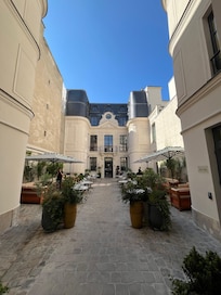 El hotel es nuevo aprox. 2 meses, bien ubicado en una zona agradable cerca del Panteón y de una Iglesia maravillosa Saint Etienne du Mont que vale la pena conocer y donde se encuentran los restos de Santa Genoveva patrona de Paris, tuvimos suerte de oír misa del Domingo ademas que se encuentra a unos 10 minutos caminando del hotel y en el trayecto se toparan con la Place de la Contrescarpe donde hay varios restaurantes muy agradables para pasar la tarde, tienes estación de metro a 3 min. caminando y si te gusta caminar en 20 minutos te encontraras con la Iglesia de Notre Dame o el Jardin de Luxemburgo.