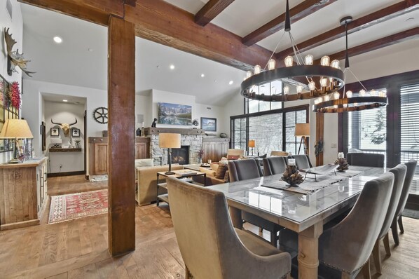 Decorada con buen gusto, esta espaciosa residencia es una reinterpretación elegante y contemporánea del albergue de esquí: acogedora y confortable, a la vez que incorpora muebles de diseño únicos y obras de arte destacadas. Disfrute de las impresionantes vistas directamente a la montaña, una cocina gourmet con electrodomésticos Viking, accesorios personalizados, AV de alta tecnología (que incluyen altavoces de pared, soporte para iPod y televisores de alta definición), pisos de madera noble y dos suites principales de lujo. Una vez que los ascensores están cerrados, relájate con una Xbox 360 y PS3, o si necesitas ser productivo, tienes a tu disposición un WiFi gratuito y una impresora. Main Street Park City está a solo 5 minutos en coche.