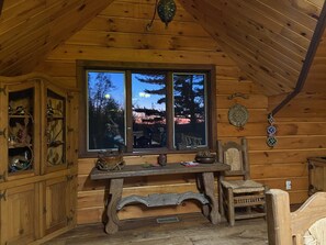 Gran cabaña rústica de 2 pisos en 31 acres de exuberante terreno privado con 7 acres de lago de pesca y dos estanques más pequeños. Disfrute de la naturaleza en su máxima expresión y espere ver abundante vida silvestre, incluyendo ciervos, osos, águilas, halcones y castores. Diviértete en nuestro bote de remos, kayaks y canoas. Senderos para caminatas, ciclismo de montaña, mesa de billar, pozo de fuego para asar malvaviscos y observar las estrellas en el claro y claro cielo nocturno.