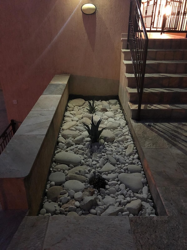 Not the easiest place to find in the middle of the night, even the taxi drivers in Peyia weren't sure but were very helpful. The road signs are miniscule and not easy to read in the dark. Good old Greg heard the hubub outside & guided us in even carrying our luggage...great chap! Once we got sorted everything was great until we locked ourselves out too late at night to get any help so we slept on the sunbeds for the night & once again was indebted to Greg who managed to get us back into the apartment about 9am. After that we had a fantastic time and in our opinion the apartment was an absolute bargain & would recommend it to anyone wanting to visit the island. Chrissie & Barry