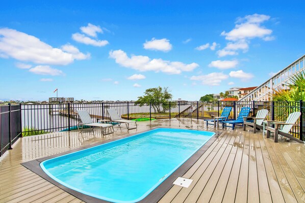 Each year we stay in this area for our family vacation. This year we brought our entire family and a few additional teens. The private pool is everything we didn't know we were missing. The bay is very peaceful and this property offers spectacular views. The neighboring properties are very nice and the owners next door were great as well. The walk to the beach was a little further than I expected but it wasn't bad at all with a wagon in tow. The house itself easily housed our group of 8. There were tons of additional items offered in the house that made our stay better from the kayaks, tennis rackets, beach items, etc.. An added bonus was the option to bring our Frenchie. It allowed us to fully enjoy our stay without having to board her. We will 100% book this property for our future vacations!
