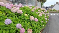 Geräumig mit Platz bei Regenwetter und Küche für den Alltagsbedarf. Alles wie im Angebot bebildert. Wir durften vorhandene Vorräte plündern und mussten zum Start nichts einkaufen. Ein wohlschmeckender Begrüßungs-Cidre überraschte uns. Einzig mein heimscher Stressless-Sessel fehlte mir als bequemste Sitzgelegenheit zum Hineinfletzen. Bequeme breite Betten, typisch für Frankreich mit einer gemeinsamen Zudecke für 2. Aber 2 Schlafzimmer haben ja je 1 Bett. Eine schöne Terrasse mit Abendsonne, eine kleine Solarstromanlage für billgen Strom. Eine geräumige Garage (die wir nicht nutzten) mit Stellplatz davor. Herrliche Hortensien an der Zufahrt zum abgeschlossenen Grundstück.