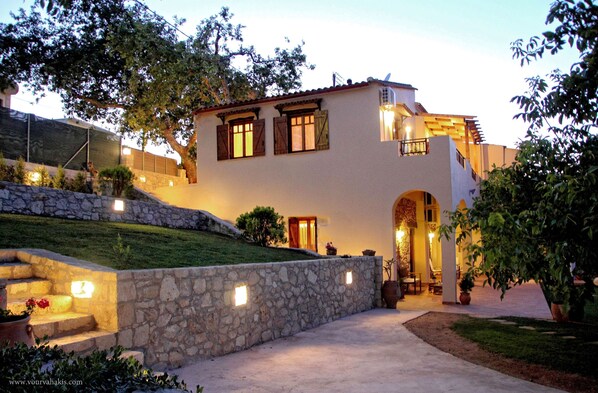 La villa se encuentra a 24 km de la ciudad de Chania y 6 km de la playa más cercana. Nuestra villa tradicional de Creta consta de dos pisos con un total de 150 metros cuadrados, que pueden alojar cómodamente hasta 8 personas. En la planta baja hay una cocina totalmente equipada con nevera, cafetera, vitrocerámica y horno, tostadora, hervidor, microondas, tostadora, lavavajillas. Equipado con baño y un dormitorio con dos camas incorporadas, una doble y una individual. También en la misma zona es también una zona de estar con sofás y TV con canales vía satélite. Arriba hay dos dormitorios y un baño. Sala de estar con TV vía satélite. Confortable y amplia sala de estar con TV vía satélite y estufa de leña, gran terraza con vistas al jardín y las montañas de los alrededores. En un dormitorio hay una cama doble y un altillo que puede acomodar a una persona, mientras que el segundo dormitorio tiene dos camas individuales. Todas las zonas tienen aire acondicionado. Wifi gratuito en todo el recinto. La casa tiene un jardín de 1300 metros cuadrados con césped en varios niveles, árboles, flores y una piscina privada climatizada de 45 metros cuadrados con sombrillas y tumbonas. También tiene un parque infantil para nuestros huéspedes más jóvenes. La villa está cerca de famosas playas como Elafonisi, que está a 40 km, Falassarna a 23 km y Balos a 25 km de nuestra villa.