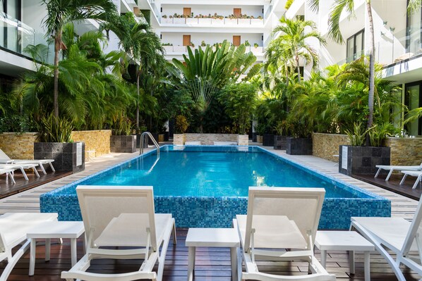 Departamento con alberca privada, a 8 min a pie de Quinta Avenida