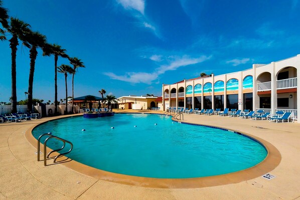 Disfrute de su tiempo lejos en este resort de primera en una isla en la bahía, justo enfrente de la diversión y la vida nocturna de South Padre Island. Juegue al golf en el campo de golf de 18 hoyos de 18 hoyos de la parroquia de Long Island Village o pase un tiempo en el centro de actividades del Resort, que cuenta con piscina cubierta y al aire libre, mini golf, jacuzzi compartido, canchas de tenis, billar, shuffleboard y bien equipado. Sala de fitness.